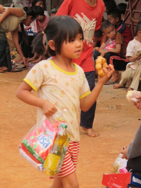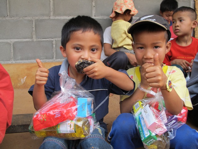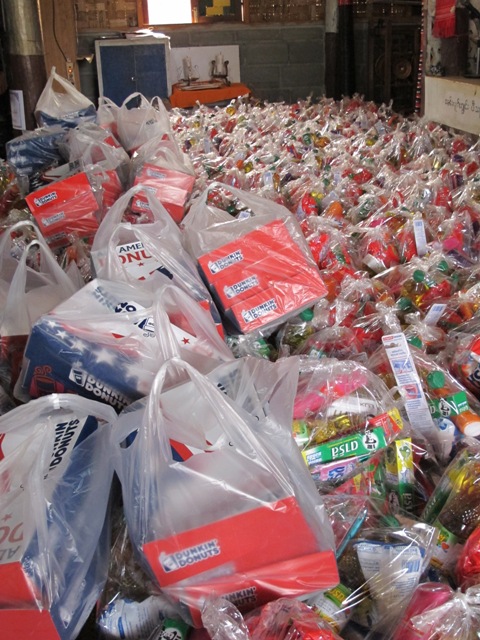 สิ่งของที่จัดเตรียมมาแจก บรรจุถุงง่ายแก่การหิ้ว