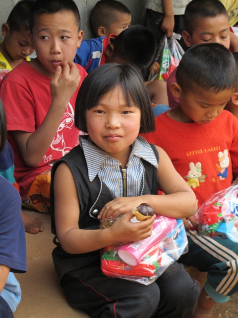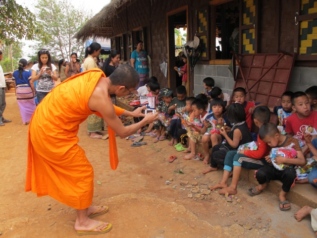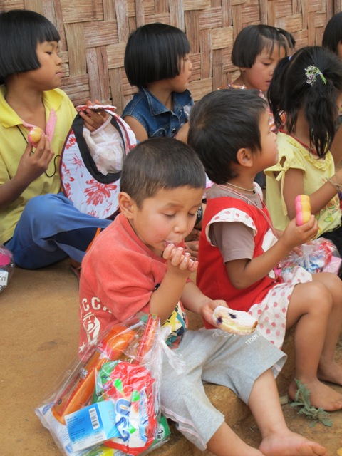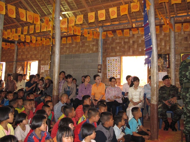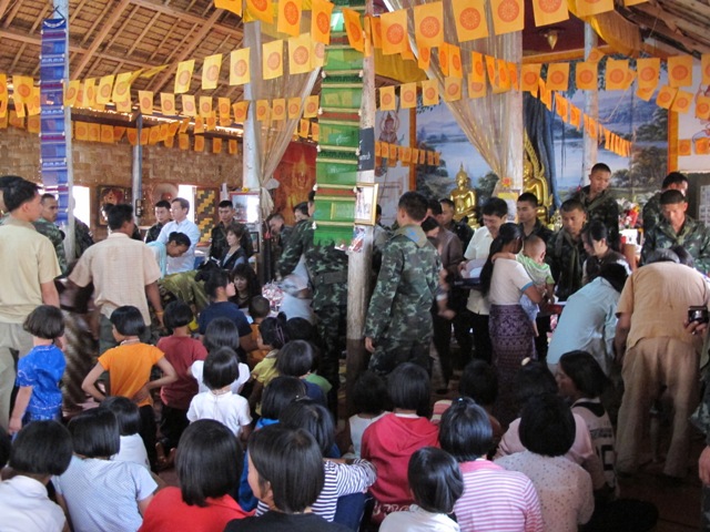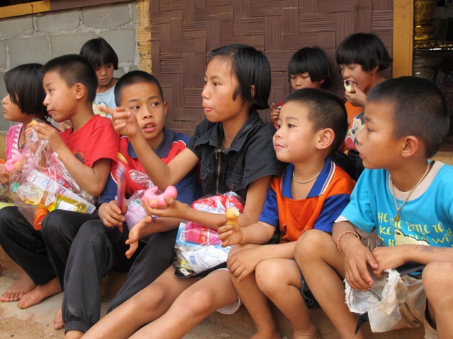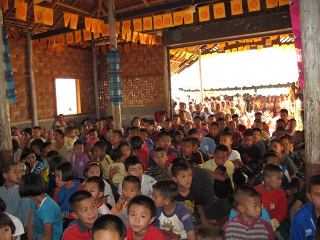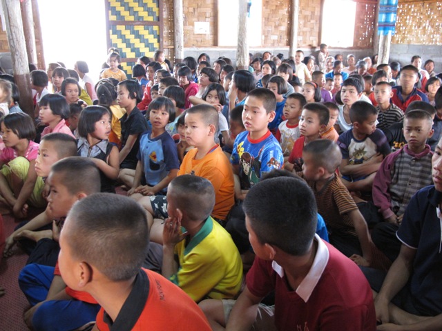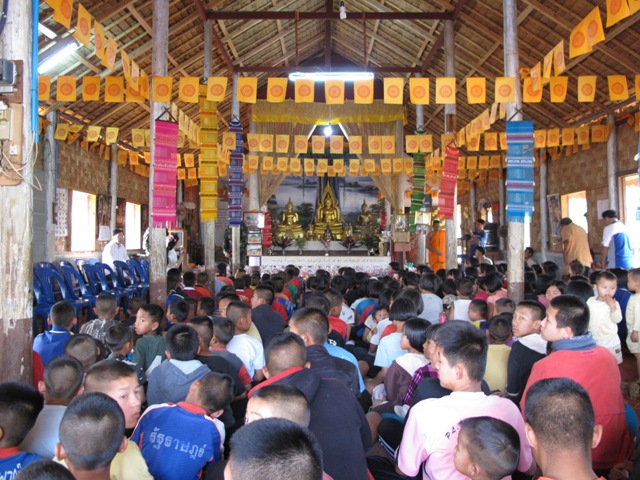 ภายในศาลาวัดใหม่กุงจ่อ เต็มไปด้วยเด็ก ๆ