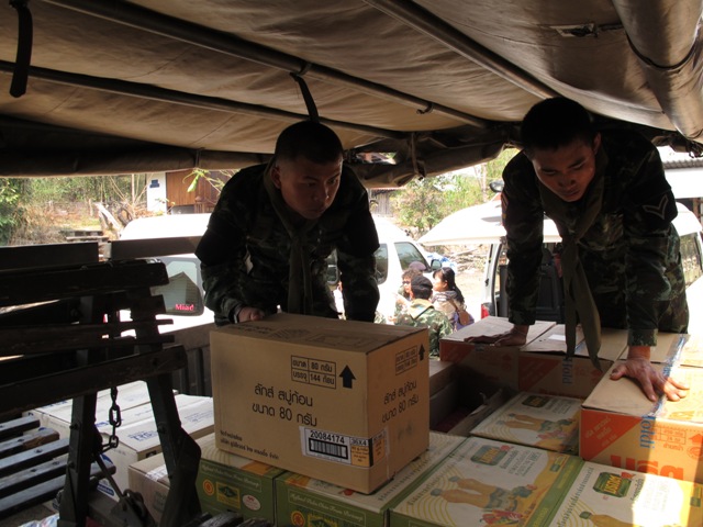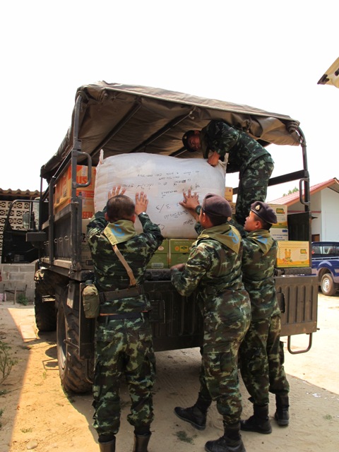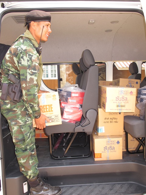 ระหว่างพักทานอาหารกลางวัน ทหารที่น่ารักของเรา ก็จัดของขึ้นรถ