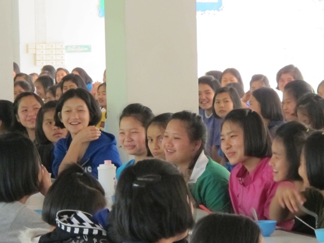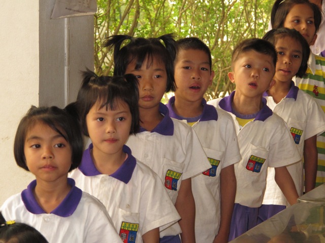 น้อง ๆ ต้อนรับคณะอาจารย์แอน ด้วยเสียงเพลงที่ไพเราะมาก