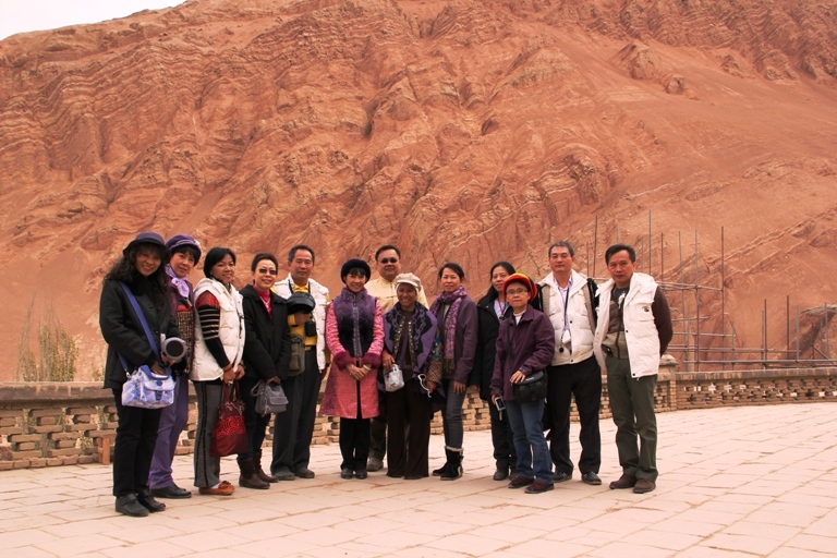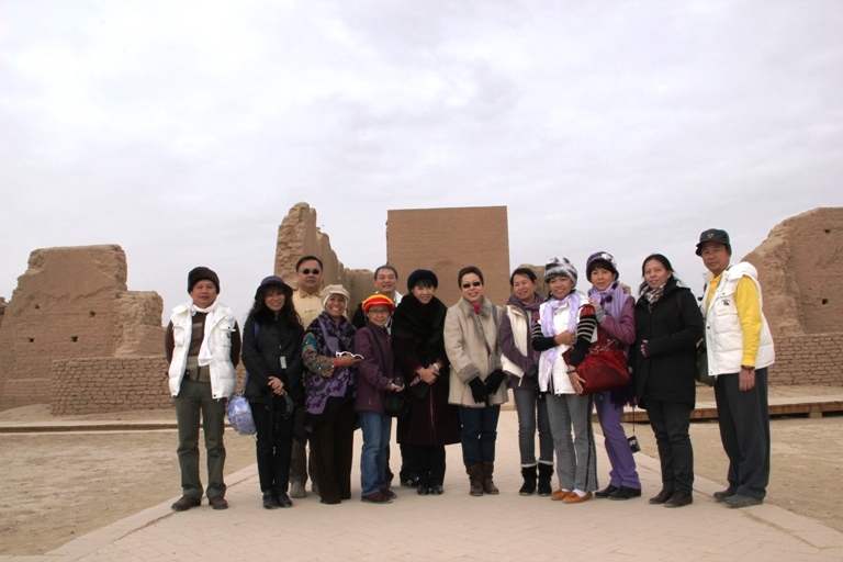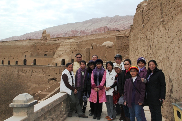 คณะศิษย์ที่ร่วมเดินทาง สนุกสนานกับการนั่งรถลา ในเมืองโบราณเกาฉางกู่เฉิง