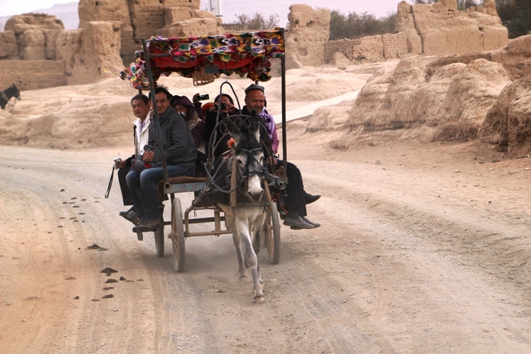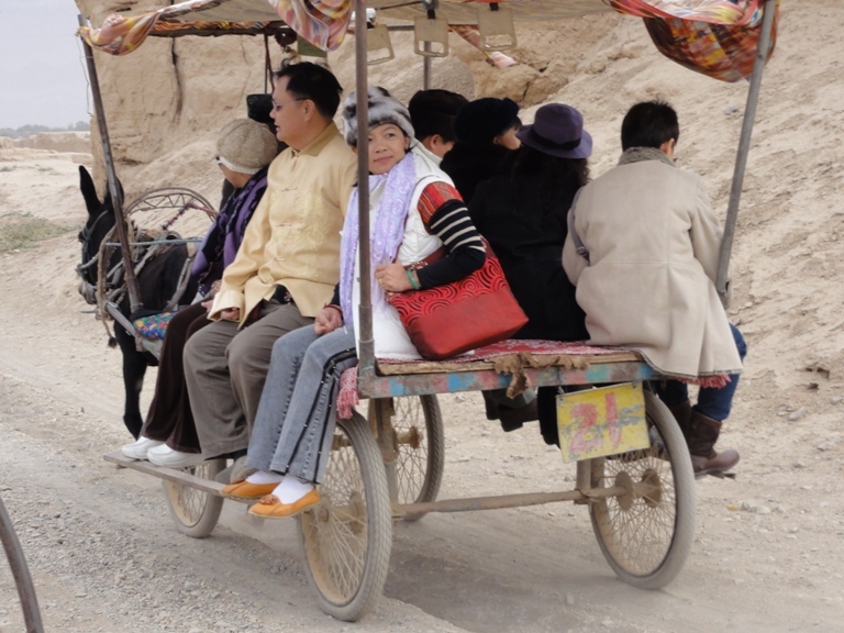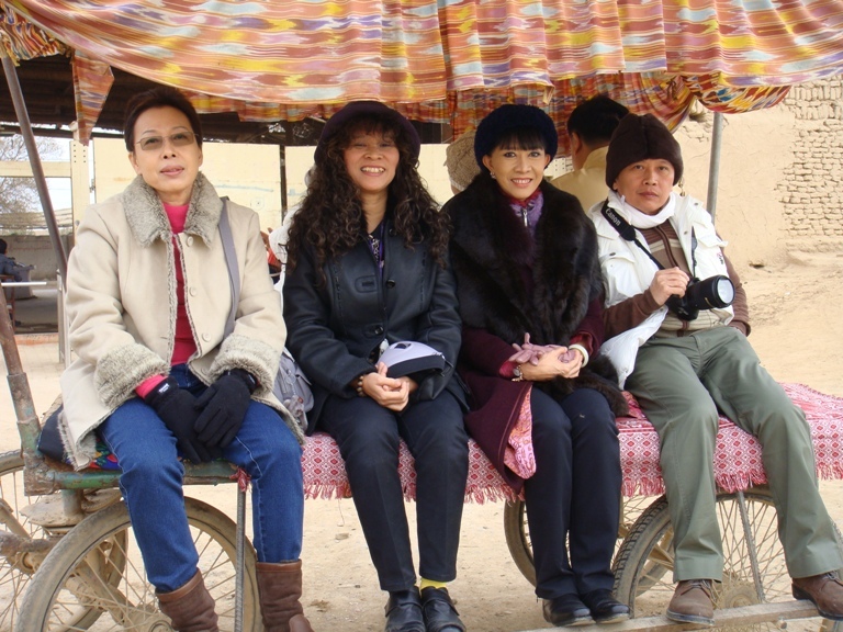 อาจารย์แอน และศิษย์ บนรถลาของชาวอุยกูร์