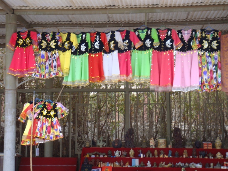 ชุดเสื้อผ้าของชนพื้นเมือง นำมาจำหน่ายแก่นักท่องเที่ยว สีสันสดใสมาก