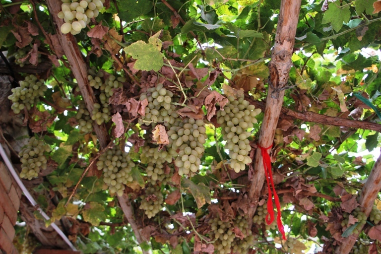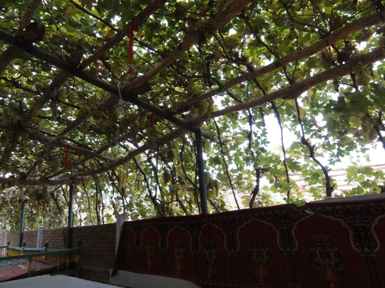 ลานนั่งพักในสวนองุ่น ของชาวเมืองทูรูฟาน ที่อร่อยเลื่องชื่อไปทั่วโลก