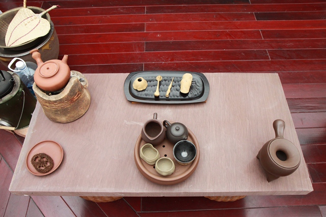 ชุดชงชา ที่ทางวัดต้าฝ่อ จัดแสดงไว้สำหรับนักท่องเที่ยว