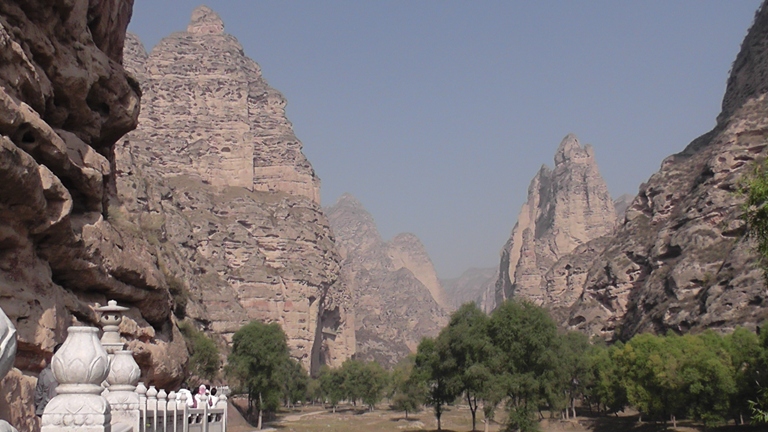 ผนังของภูเขาเต็มไปด้วยศรัทธาของชาวพุทธ