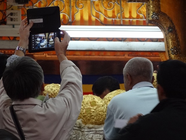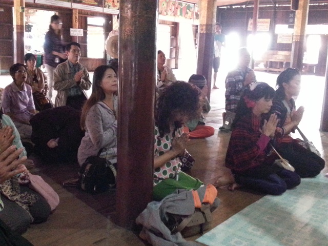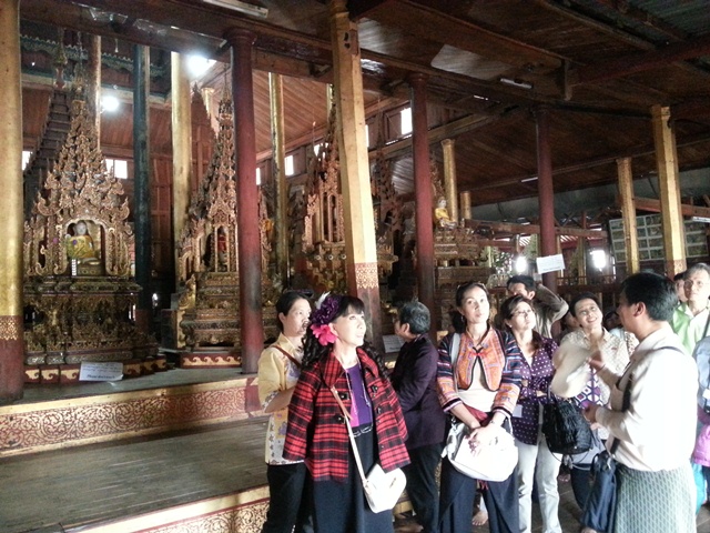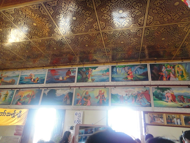 ไกด์ชาวไทยใหญ่ อธิบายภาพเขียนพุทธประวัติ และประวัติพระบัวเข็มทั้งห้าพระองค์